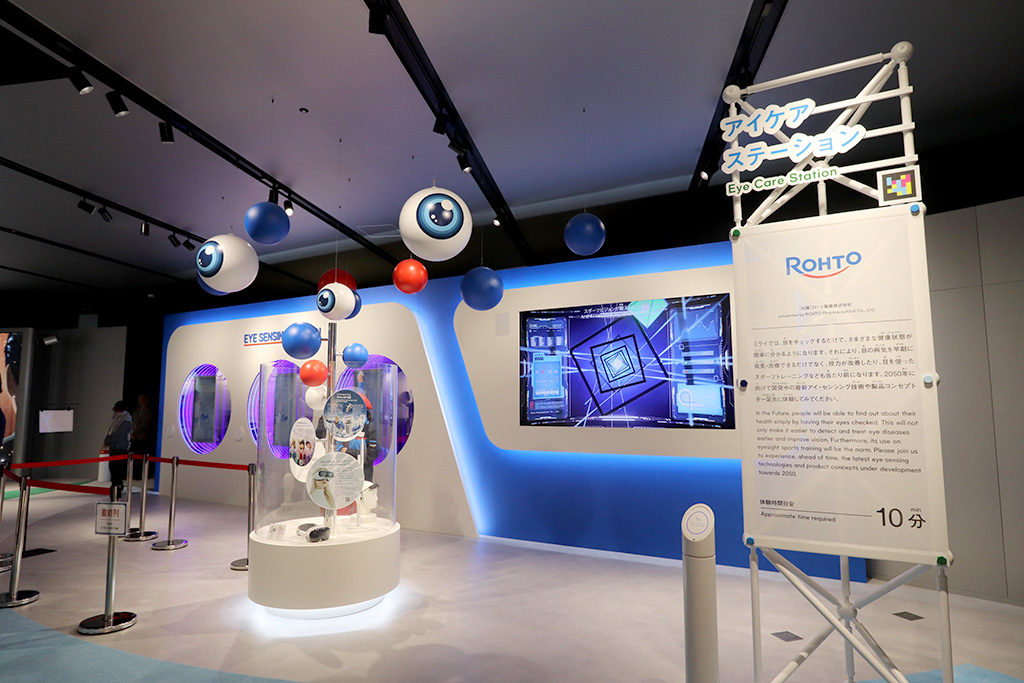 ロート製薬が提供する「アイケアステーション」では、2050年に向けて開発中の最新アイ・センシング技術を動画で体験できます。ちなみに「センシング」とは、センサーを用いてモノの動きなどの情報を収集すること。そして「アイ・センシング」とは、このセンシングで目の動きや目の情報を収集し、目の健康状態を分析する技術です。