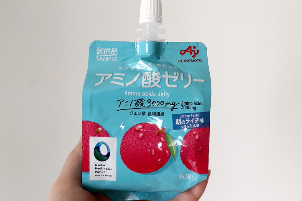 「『パーソナルフードスタンド』では、測定結果をもとにいま必要な栄養素を補っていただくという意味で、GABA配合のグミや乳酸菌を配合した乳飲料、1日分のビタミン入りゼリーなど、協賛企業さまのサンプル品から、その人に合ったものが提供されます。パビリオンを出たあとに早速試し、行動を変えるきっかけにしてみてくださいね」