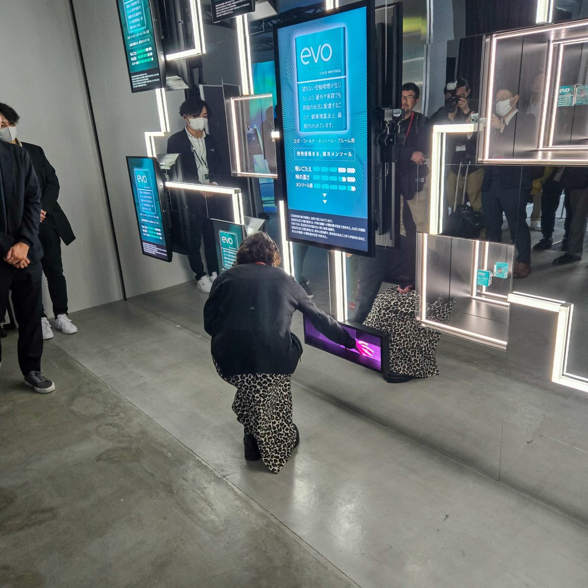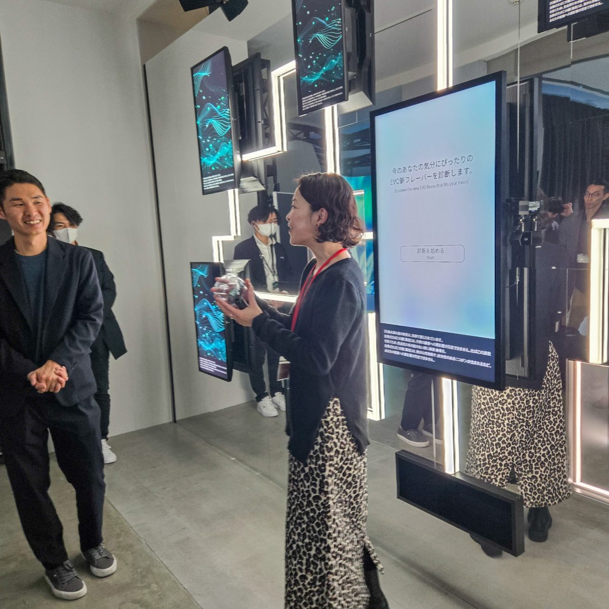 目玉となる2階では、アートテクノロジーの力で心を揺さぶる新たな体験や価値を提供する「NAKED, INC.」が空間演出をプロデュース。「アクアグリーン」をイメージした植物の世界と、「EVO新メンソール」をイメージした氷の世界が広がる、没入感あふれるインタラクティブな映像空間を楽しめます。