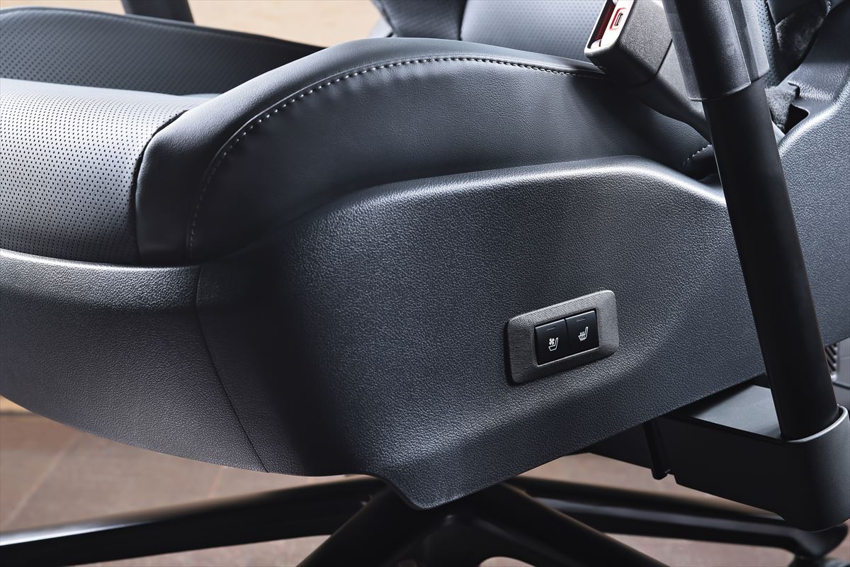 一般的なデスクチェアにはない機能はさらにあります。クラウンの本革仕様のシートに付いているシートヒーターとシートベンチレーションです。