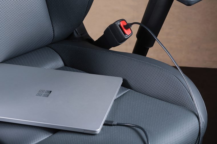 【ココがすごいその4】シートベルトのバックルにPCも充電できるUSB-C搭載