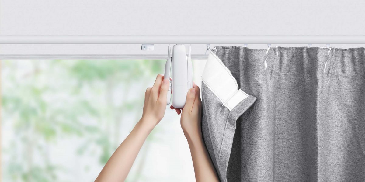 工事や配線なしでカーテンの開閉を自動化するIoT家電。タイマーを使うと、自動で朝日を部屋に取り込める。業界初の独自技術「QuietDriftモード」を搭載し、前モデルよりもゆっくり静かに開閉できる。