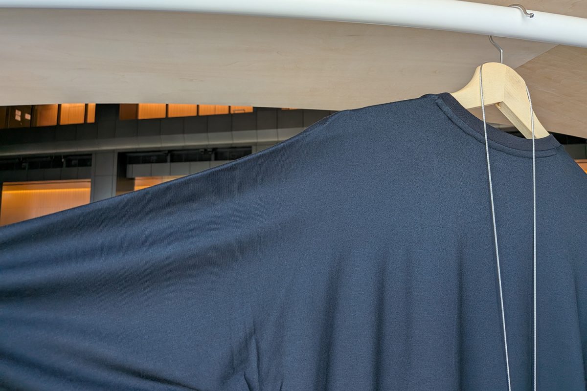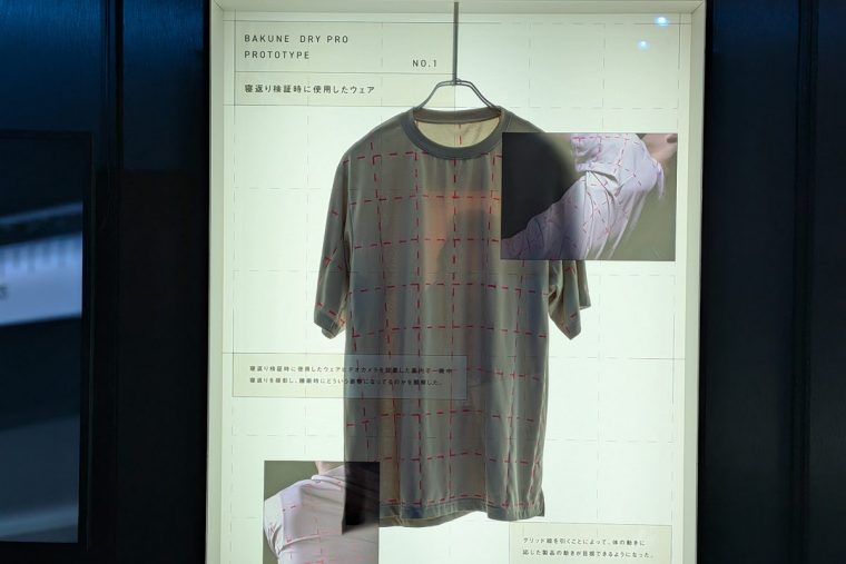 パターン設計は最もこだわった部分だそうで、寝返りの動きをイチから分析して、縫い目の位置を設計し直した独自技術「BAKUNE Motion Design Pro」を採用しています。これにより、寝返り時の衣服のゆがみを91%低減。衣服が体の動きに追従することで引っかかりや摩擦を抑え、寝返りを打っても眠りが途切れないそうです。