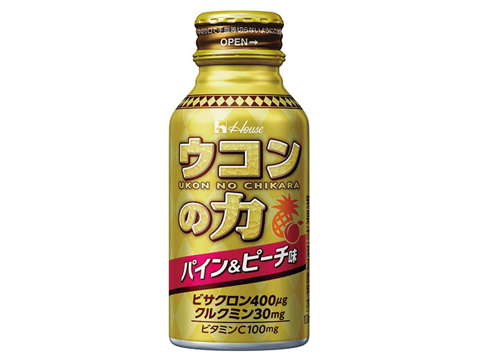 おいしさにこだわった、2015年発売の新商品。成分は定番の「ウコンの力」と同様で、パインとピーチの風味によるスッキリとした飲みやすさが特徴です。無果汁。