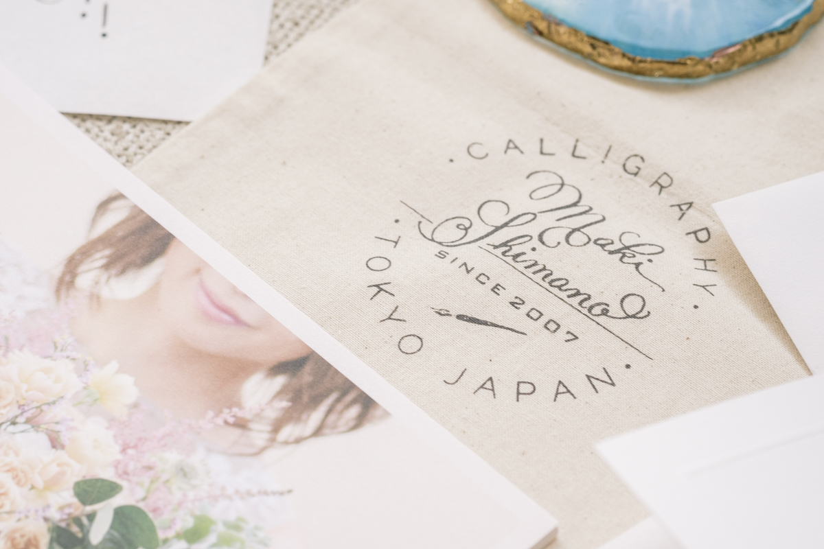 認知度が上がるとともに島野さんのモダンカリグラフィーの仕事も増え、個人のウェディングで使うアイテム以外にも、ブランドロゴやパッケージ、写真スタジオの撮影用文字の作成、雑誌を含む出版物、文房具メーカーによる教本の監修などを行うに至っている。