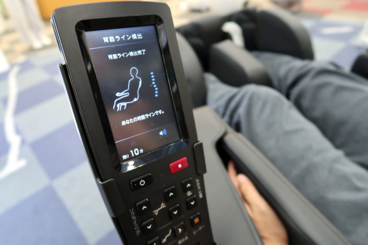 実際に体験してみると、ズバリ気持ちよかったです。最初は脚と背すじを伸ばしてのストレッチコースから体験。凝り固まった全身の筋肉をほぐしてから、全身マッサージを体験しました。脚部をグーンと引っ張り伸ばしてくれてる動作にやられてしまい、はじまってすぐにこのマッサージチェアの虜になってしました。さらに、AI機能がしっかりと肩の高さを検知して肩を揉んでくれます。ここに関しては、スパなどでいくつかのマッサージチェアを体感している私ですが、いままではあまり肩のマッサージには満足していませんでした。しかし、さすがAIで自動検知しているだけあって、肩の筋肉へダイレクトに伝わる滑らかな揉みほぐしが良いです。