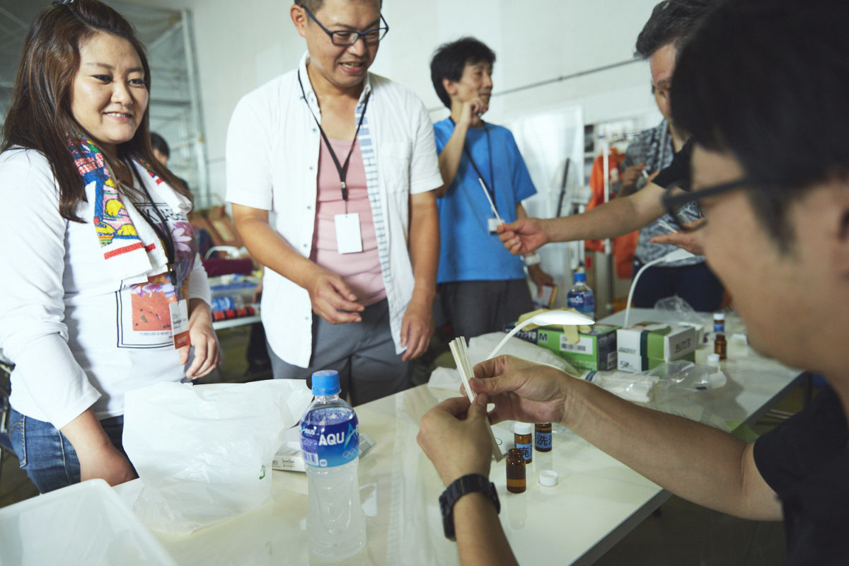 前編で、葉たばこの収穫、乾燥、ブレンド、手巻きまでの行程をご紹介しましたが、これだけでは商品としては成り立ちません。香り付けという行程をもって、ようやく完成となります。市場に出回る商品は、必ずしも香り付けが最後に行われるわけではないようですが、今回のStarlight Tourでは、香り付けは葉たばこ収穫と手巻き体験のクライマックスとなりました。