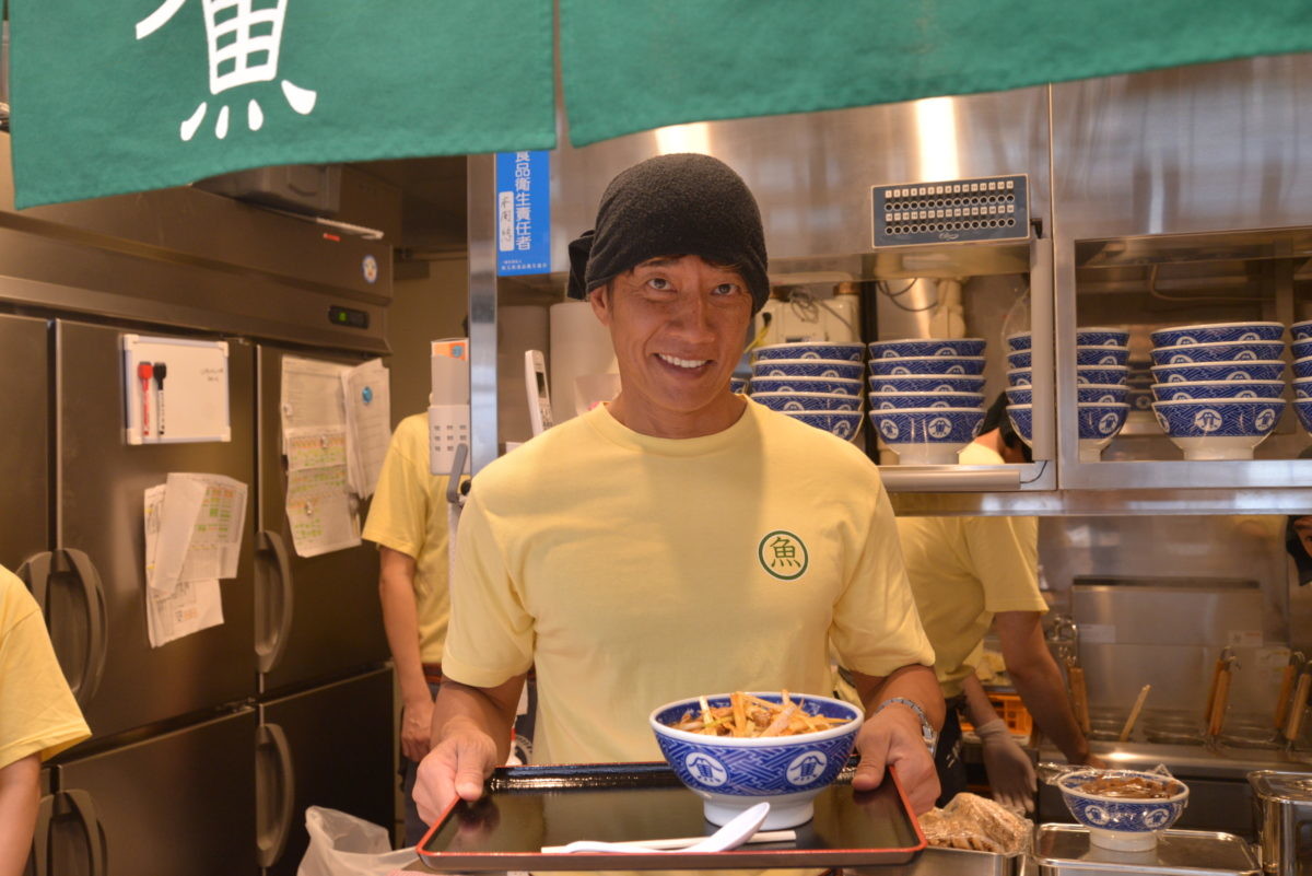 そんな数ある名店のなかから筆者が食べたのは、もえあずさんが「今回の有名店のなかで、限定メニューとして必食なのは『せたが屋』の『深谷ネギチャーシュー平打ラーメン』ですよ」と教えてくれた一杯。ここは、ラーメン通の間では知らない人がいないカリスマ、前島司さんのお店で、この日は本人が駆けつけていました。