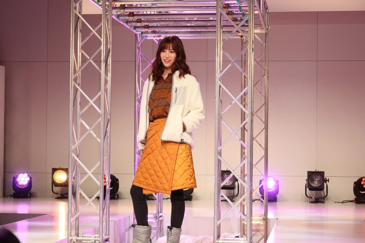 最後に雪をまとって登場したのは、三菱商事ファッションが開発した高水準の耐久撥水性能とストレッチ性、高い防風性を持つ生地“DIAMAGIC DIRECT(ディアマジック・ダイレクト)”を採用した「防風防寒ジャンパー」(2900円)と、「レディースウオームクライミングパンツ」(1900円)、「防寒ブーツ ケベックNEO」(2900円)でコーディネートした女性です。冬のキャンプやウインタースポーツにぴったりではないでしょうか。