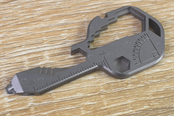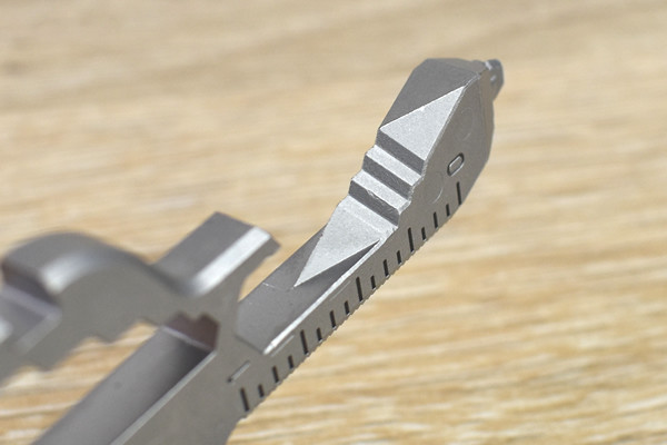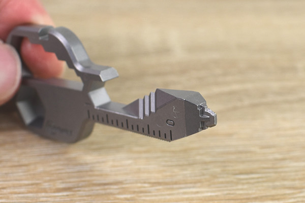 続いて鍵先のような部分に注目。先端は少し尖っており、ダンボールを開封する時の「ボックスカッター」や、ホッチキスの芯を取り外す際の「ホッチキスリムーバー」として活躍します。またプラスやマイナス、スクウェアーなど様々なタイプに対応した「ドライバー」としても活用可能。それだけでなく、側面には「ヤスリ」や表裏でインチとセンチを使い分けられる「定規」も完備されています。痒い所に手が届きまくる仕様ですね…!