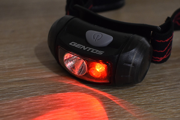 スイッチをオンにすると、想像以上に明るいライトが発光。光源の周りに“リフレクター”が配置されているため、広範囲を照らしてくれました。個人的に気に入ったのは、赤色の不気味な光を放つ“サブLED”。「ライトが明るすぎて作業が捗らない…」といった際に一役買ってくれるかも!