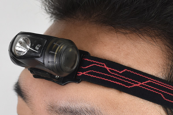 ヘッドバンドの裏面には、頭から外れないように透明な“滑り止め”が。ライトのヘッド部分は0~90度で傾くため、角度を調節しながら作業ができそうですね。以前まで使っていたヘッドライトは少しずつズレ落ちてきましたが、同商品は首を振ってもしっかり頭にフィットしています。