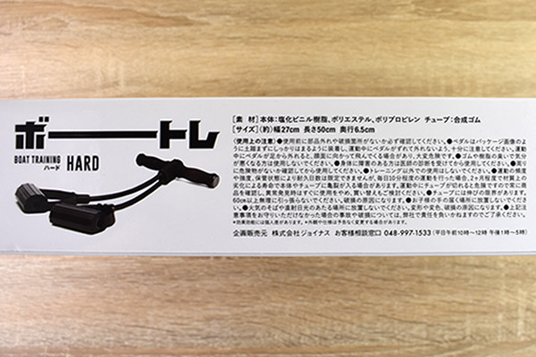 「ボートレ」が入っている箱には「ボート漕ぎ運動で全身キタエル」という表記が。必死な形相でチューブを引っ張る外国人男性の姿もプリントされていました。ボート漕ぎ運動の“キツさ”がひしひしと伝わってきますね…。