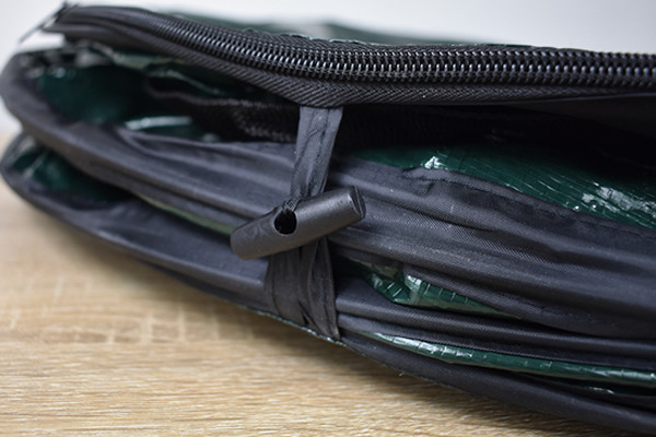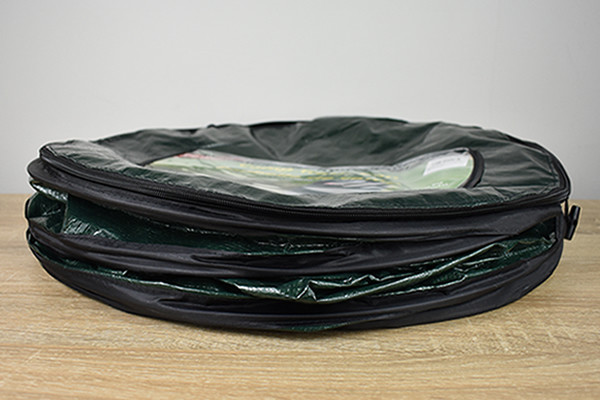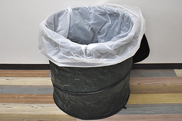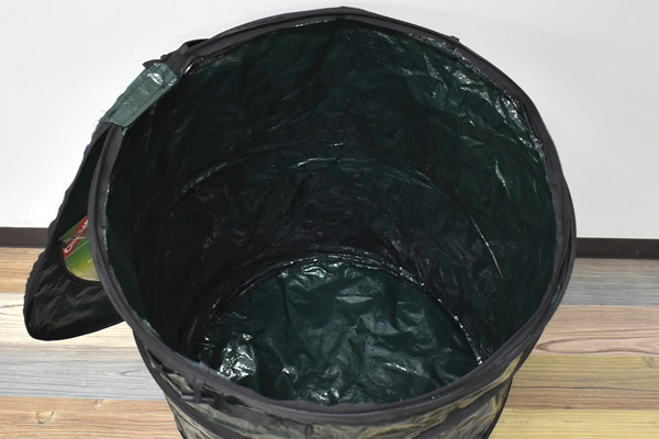 ごみ箱の開け口にはファスナーがついており、全開にすると直径とほぼ同じ大きさに広げられます。これだけ広ければ、ストレスフリーでごみを捨てられそうですね。