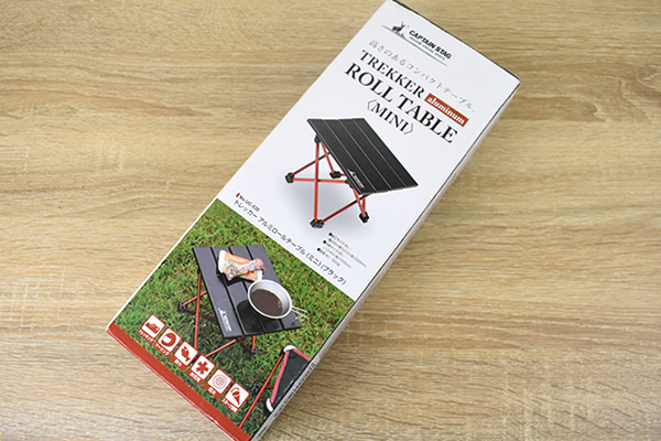 折り畳み式のテーブルを選ぶ上で見逃せないのが“サイズ感”。ただ大きければいいという訳ではなく、用途や人数によって最適なアイテムをチョイスするのが重要です。今回見つけた「トレッカー アルミロールテーブル(ミニ)」は、約550gの軽量アウトドアテーブル。ソロキャンプを楽しむことも多い私にとってちょうどいいサイズ感なのでは… と思い、購入してみました。