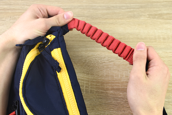 ストラップにゴムを使用しているため、装着すると体にピッタリとフィット。長時間つけていてもズレることがなく、カバンの位置を一定に保ってくれます。体に密着するようなサイズ調整ができるおかげで、揺れた時の振動や衝撃もほとんど感じませんでした。