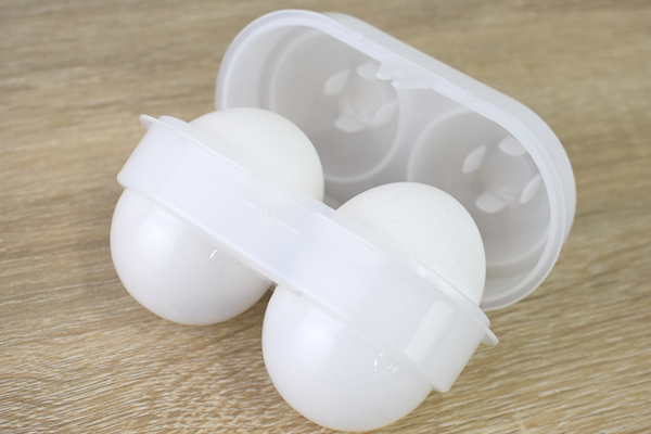 同商品は、ポリプロピレンやポリエチレンを使った半透明なケース。大きさは約10(幅)×5.5(奥行)×7.3cm(高さ)と手のひらサイズで、Mサイズの卵まで収納することができます。ケースは衝撃吸収材のように柔らかいわけではなく、プラスチックに似た硬い感触。よほど強く押さなければ変形しそうにないので、他の荷物に押されて卵が割れてしまう心配はありません。