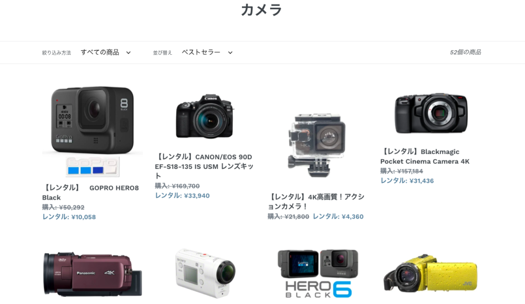 まずは「フラリー」のwebサイト(https://flarii.com/)にアクセスして会員登録。使いたいアイテムを選びます。レンタル可能なアイテム数は1000品目を超えているだけあって、なかなか充実しています。ウェア類は男性用より女性用が多い印象ですが、カメラなどは点数も多くフルサイズの一眼レフからミラーレス、GoProなどのアクションカムまでラインナップ。その数は50機種以上で、交換レンズも約40本から選べます。取材用のカメラがレンタルできて現地に届いているだけでも、個人的にはかなり荷物を軽くできます。