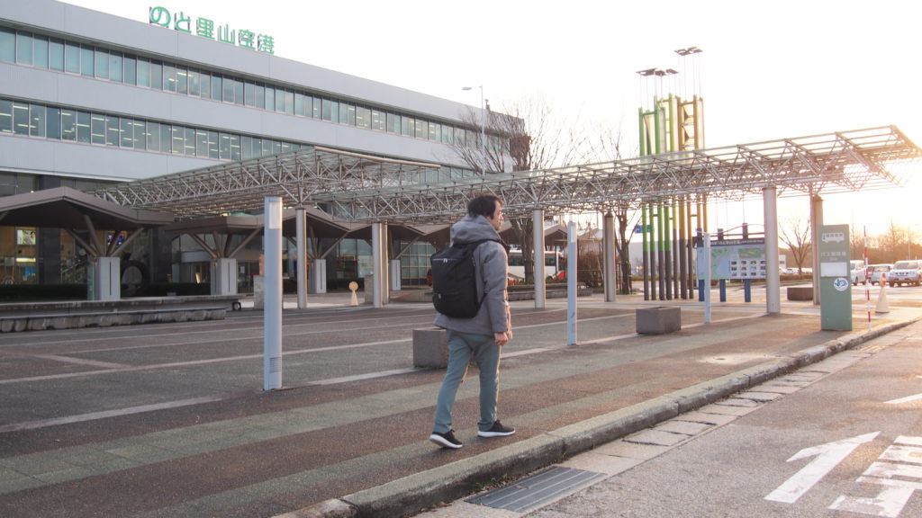 ↑目的地の能登里山空港に到着。軽装なので心も軽やか