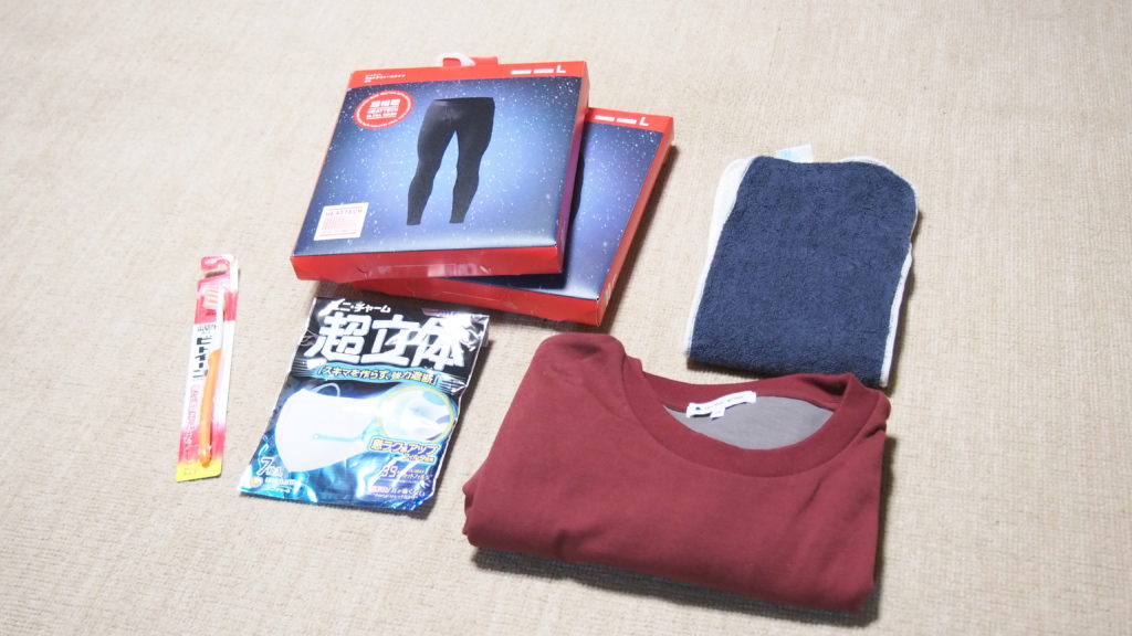 ↑歯ブラシやマスクなどの日用品も頼んでおいたので、今回のようにホテルや旅館でない場所に泊まるときにはありがたい