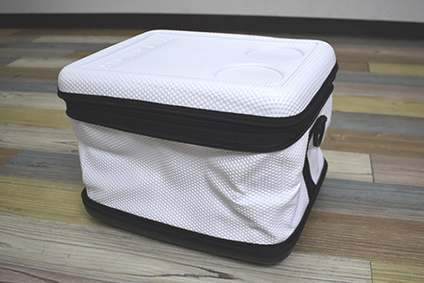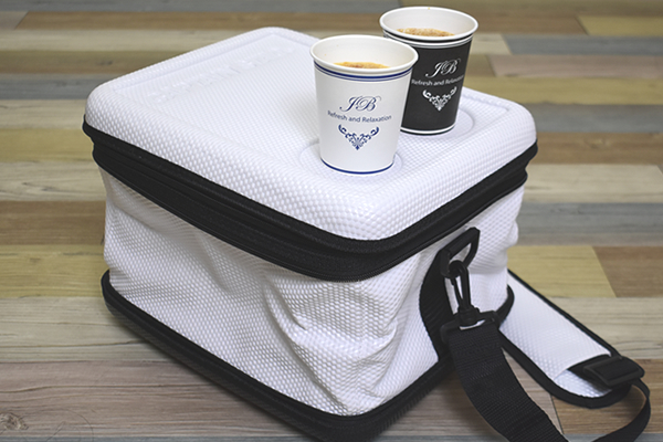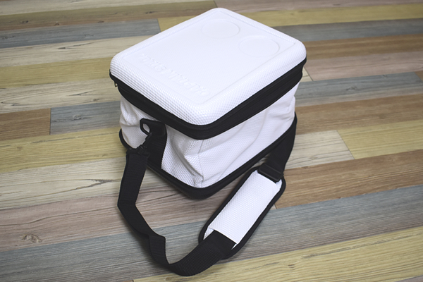 同商品はコンパクトに収納できる折り畳み式のクーラーバッグ。収納時は30(幅)×24(奥行)×10.5cm(高さ)ほどで、“アタッシュケース”にそっくりな見た目です。持ち運びをラクにするために、ショルダーベルトがついているのがうれしいポイント。さっそくバッグを組み立てていきます。