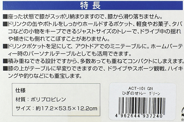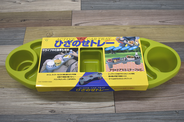 キャンプやドライブに出かけると、車内で食事をとる機会が多いですよね。先日ドライブスルーを利用して「ハンバーガー」「ドリンク」「ポテト」を注文した私は、不安定な車内での食事に大苦戦。車内にポテトをまき散らすという大事件を起こしてしまいました。二度と同じ失敗をしないため、見つけ出したのが今回ご紹介する「ひざのせトレー」(860円/税込)。ひざの上にセットできる簡易型テーブルです。
