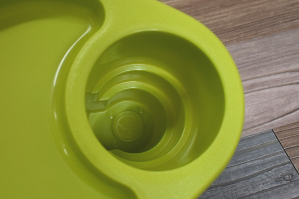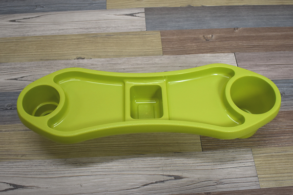 同商品のサイズは約53.5(幅)×17.2(奥行)×12.2cm(高さ)。ひざの上にセットしてみたところ、トレーの凹凸が脚にフィットして予想以上の安定感を発揮しました。ボディがポリプロピレンでできているため、汚れにくいのもポイント。もしトレーの中に食べ物をこぼしても、簡単に洗い流せますよ。