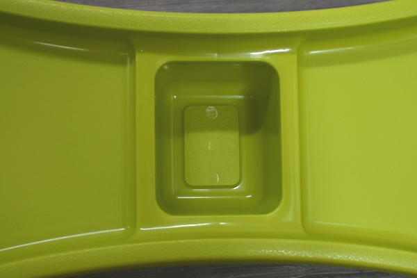 試しに飲み物とお菓子をのせてトレーの性能を確認。ドリンクポケットはかなり底が深くなっており、車内の揺れが強くてもこぼれる心配はありません。容器を置くスペースの中央にも“くぼみ”がついていて、箸や布巾などを収納可能。不自由なく食事を楽しむことができます!