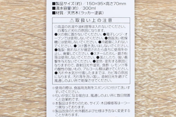 木製の食器を選ぶ時に心配なのが、木の独特な香りやニスの臭い。いかにデザインが気に入っても、食器である以上は譲れないポイントです。そこで実際に飲み物を入れて飲んでみましたが、余計な匂いはまったく感じません。紅茶やコーヒーなどの香りを楽しみたい飲料も問題なく味わえますよ。ボディのフチは適度に薄くなっているので、飲みやすさもばっちり。見た目のおしゃれさだけではなく、使い勝手もしっかり考えられていました。