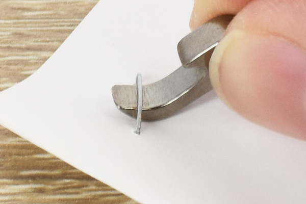 フックのような形状を利用することで、様々なツールとして利用できるのが同商品のポイント。さっそく爪の先端部分を“ドライバー”代わりに、ネジ締めにチャレンジしてみました。緩やかにカーブした爪の先端がしっかりフィットして、ネジ締めは想像以上にスムーズ。穴の小さいネジでも問題なく使用できるため、卓上ライトや置き時計といった小物を整備したい時にはかなりおススメですよ。