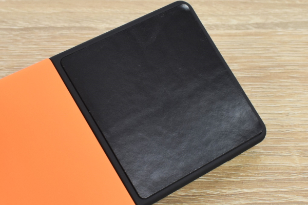 無線給電「Qi」に対応した同商品。本体は“送電器”と“充電器”の2つにパーツが別れています。最大の特徴は送電器についている“ナノサンクション”と呼ばれる吸盤。この吸盤には“ペタペタ”と物にくっつく性質があり、スマホやタブレットなどのボディに吸着させることが可能です。さっそくスマホに取りつけてワイヤレス給電を体験してみましょう。
