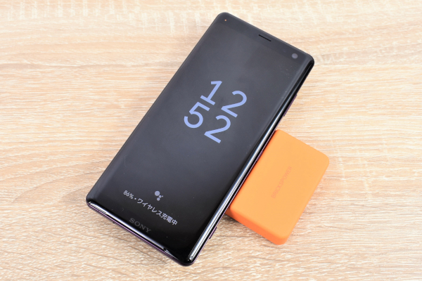 “送電器”と“充電器”を合体させてスマホに取りつければ準備は完了。送電器とスマホが接触しているだけで、バッテリーがチャージされます。続いてスマホを軽く振って吸盤の強度もチェック。「バッテリーが剥がれないかな?」と心配でしたが、吸着力が想像以上に強力なおかけで落下する様子はありませんでした。