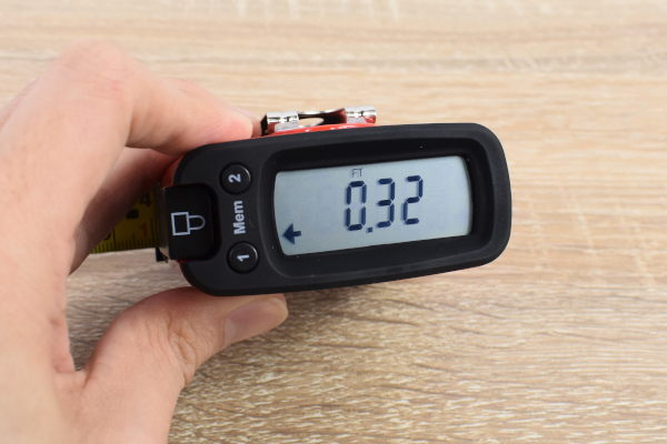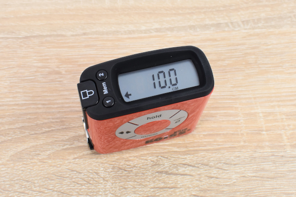メジャーの本体にデジタル画面が搭載された同商品。側面には画面を操作するためのボタンがついています。“hold”機能を使うことで測った長さを本体に記録できるのが最大のポイント。さっそく使い心地を確かめてみましょう。