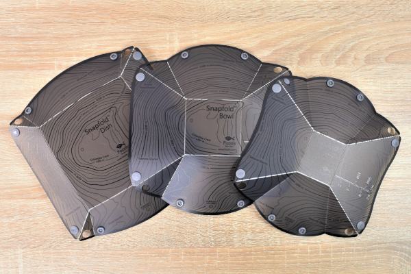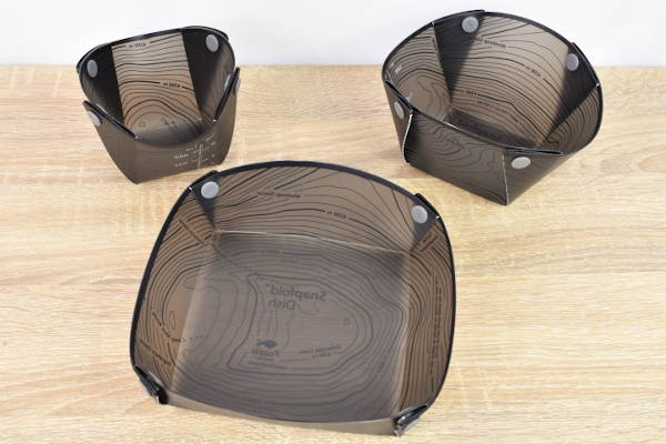 プレートの隅にはスナップがついていて、折りたたむと食器に変身。カップ、ボウル、ディッシュとそれぞれ深さが異なり、食材や料理に合わせて使い分けることが可能です。