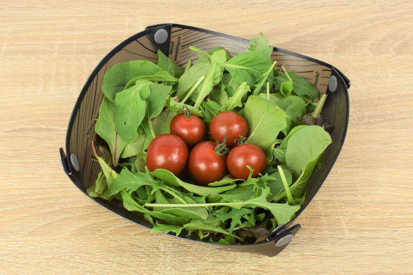 ポリプロピレン製の丈夫なプレートは、食材をカットするまな板として使ってもOK。カップとボウルには目盛りがついており、調理の段階から活躍してくれます。約105度までの熱に耐えられるため、熱々のスープを入れても問題なし。食事が終わったら平らにして丸洗いしましょう。