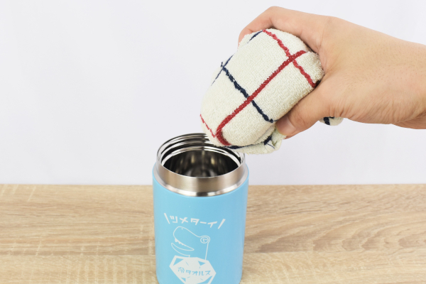 10分ほど経過してから取り出してみると、タオルは驚くほどキンキンに冷えた状態でした。顔に近づけた瞬間、冷たいおしぼりで汗を拭いたような爽快感が……。顔や体にこもった熱気を、一気にリフレッシュできますよ。またボトルは“真空断熱構造”が採用されているので、約8時間経過しても10度以下の温度をキープ。通勤中やスポーツなどで汗をかいた時に、何度でもクールダウンできるアイテムです。