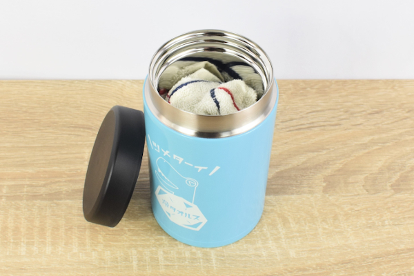 可愛らしいパッケージに入っている同商品。さっそく箱を開けてみたところ、水色の“ステンレスボトル”がお目見えしました。大きさは約86.4(直径)×142mm(高さ)ほどで、ボトルの重量はおよそ260g。頑丈な見た目ですが、意外と軽いのでカバンの中に入れてラクラク持ち運べます。