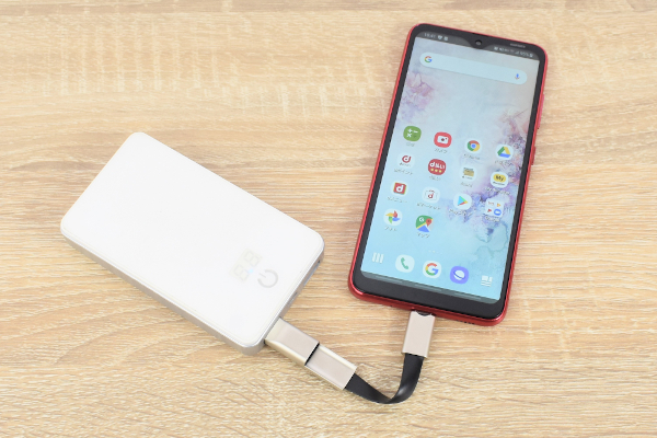 私のスマホはUSB-Cで充電するAndroidなので、2wayコネクタをUSB-Aに差し込んでモバイルバッテリーと接続することに。コネクタを入れ替えると、iPadにも問題なく接続できます。これなら複数のケーブルや変換機を持ち歩く必要がありません。