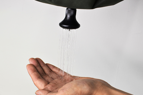 同商品はポリエステルで作られた即席のシャワー。サイズは約18(幅)×18(奥行き)×62cm(高さ)ほどで、およそ9リットルもの水を入れられます。使用する際はバッグの中に水を入れて、バルブから放水するだけ。重力に従って水が流れる仕組みになっており、電源や電池などは必要ありません。折り畳むと約12(幅)×6(奥行き)×30cm(高さ)くらいにまで小さくなるため、持ち運びもラクチンですよ。
