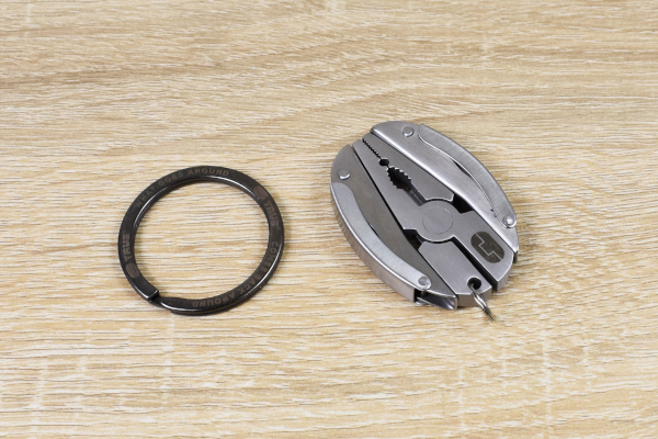 バックなどに引っ掛けておけるキーリングも付属。いざというときに取り出しやすいことも、マルチツール選びにおいて重要なポイントです。