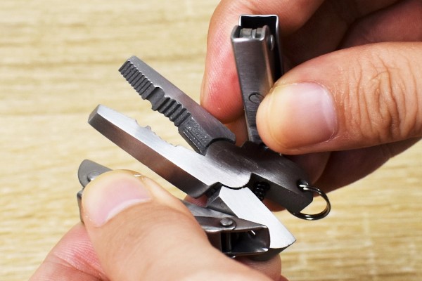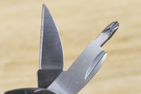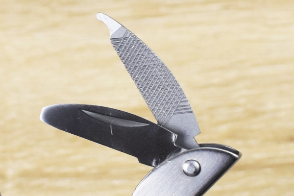 まずは両サイドのカバーを開いて、ナイフやドライバー、爪やすりといった機能をチェックすることに。どれも指先ほどのサイズですが、十分実用性のある作りです。