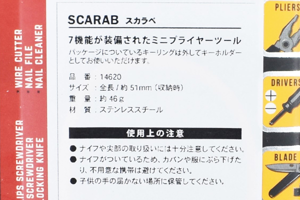 ポケットサイズのマルチツールは数多く存在しますが、基本的には機能性を重視した無骨なデザインのものばかり。せっかくならスマートでおしゃれなツールを選んで、アウトドアの際にカッコよく使いたいですよね。そこで今回は、「スカラベ」(2000円/税抜)をご紹介。使うときのビジュアルが羽を広げた虫のように見えるアイテムです。