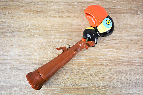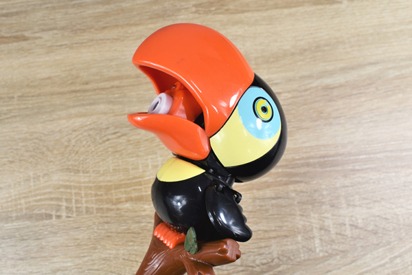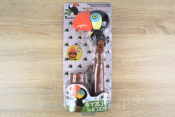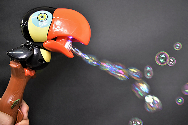 鳥の下にあるトリガーを引くと、くちばしが開いて鳥のさえずりと共にシャボン玉が吹き出されました。