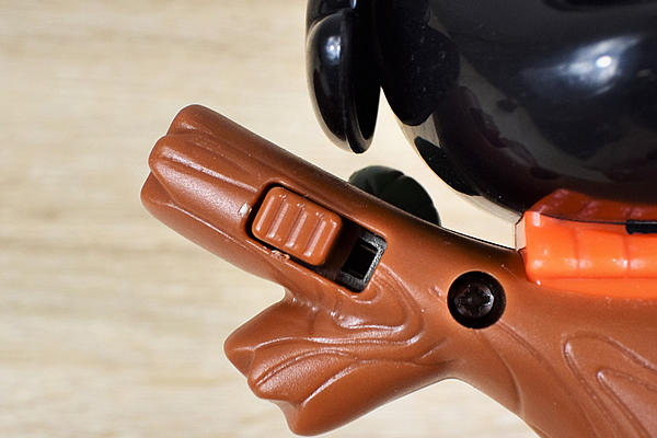 続いてはスイッチをボイスレコーダーモードに切り替え、サイドのボタンを押しながら自分の声を録音。トリガーを引くと、ボイスチェンジャーで鳥のように甲高くなった自分の声が再生されます。1度録音したらトリガーを引くだけで何度でも再生可能なので、まるでオウムが言葉を覚えて喋っているよう。ついつい何度も話しかけたくなりますね。