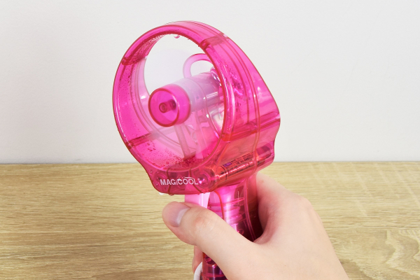 本体のサイズは約26.5(高さ)×7cm(奥行き)ほど。ファンの下には氷水を入れるためのタンクがついています。公式サイトによるとミストが蒸発する時の“気化熱”を利用して、体の温度をあっという間に下げることができるよう。それではタンクに氷水を入れて、どれほどの涼しさなのか体験してみましょう!