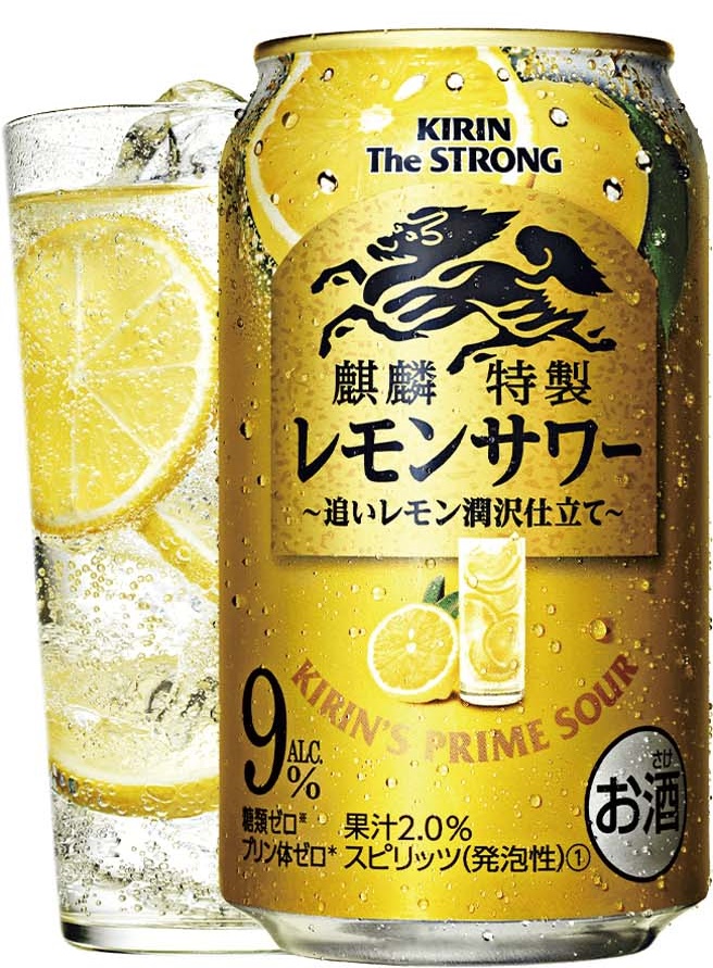 「キリン・ザ・ストロング」が進化。複数の果実を長時間煮詰めた「うまみエキス」を配合し、よりおいしくなった。ブランド全体の販売数量は前年比170%という大ヒットに。レモンサワーなど5種ラインナップ。