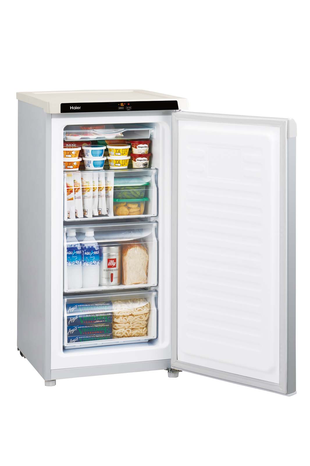 庫内を整理しやすい前開き冷凍庫。3段のクリアトレイを搭載し、各段それぞれを直接冷やすので食材を素早く冷凍できる。冷却強度を5段階に調節可能。部屋になじむスタイリッシュなデザインも魅力だ。