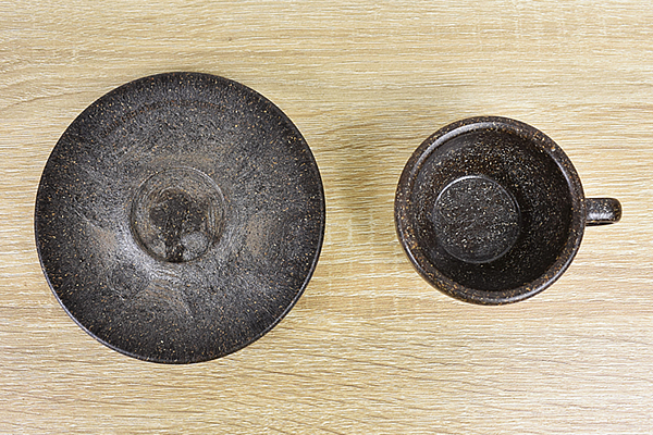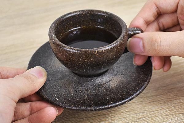 抽出し終わったコーヒー豆の“かす”を固めて作られた同商品。カップからは、芳醇なコーヒーの香りが“フワッ”と漂ってきます。カップのサイズは約73(直径)×90(幅)×45mm(高さ)ほど。付属のソーサーも約125(直径)×15mm(高さ)とコンパクトなので、アウトドアシーンでも持ち運びしやすいのがありがたいですね。