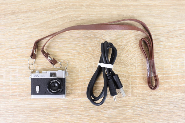 パッケージの中にはカメラだけでなく、ストラップやUSB接続ケーブルなどが入っていました。ちなみに、本体に画像を保存する場合は別売りの“microSD”が必要なのでお忘れなく。