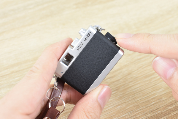 さっそくmicroSDをカメラにセットし、写真を撮影していきましょう。“ONボタン”を長押しして、まずカメラを起動させます。赤色のLEDライトが点灯したら、後はシャッターを押すだけ。ちなみに一般的なデジカメのように、撮影した画像を確認する“液晶モニター”はついていません。どのように写真が写っているかは、パソコンに接続した際のお楽しみです。